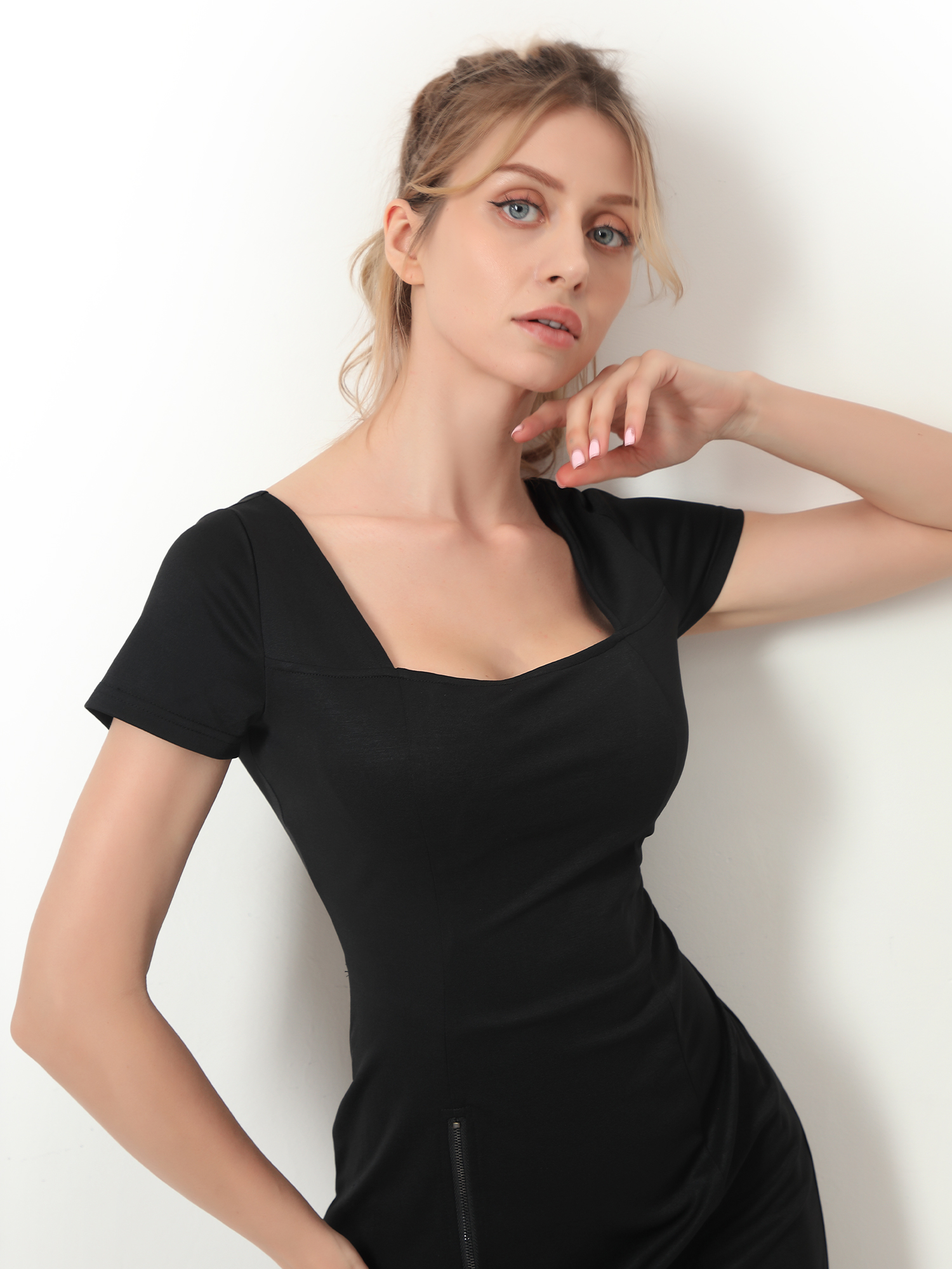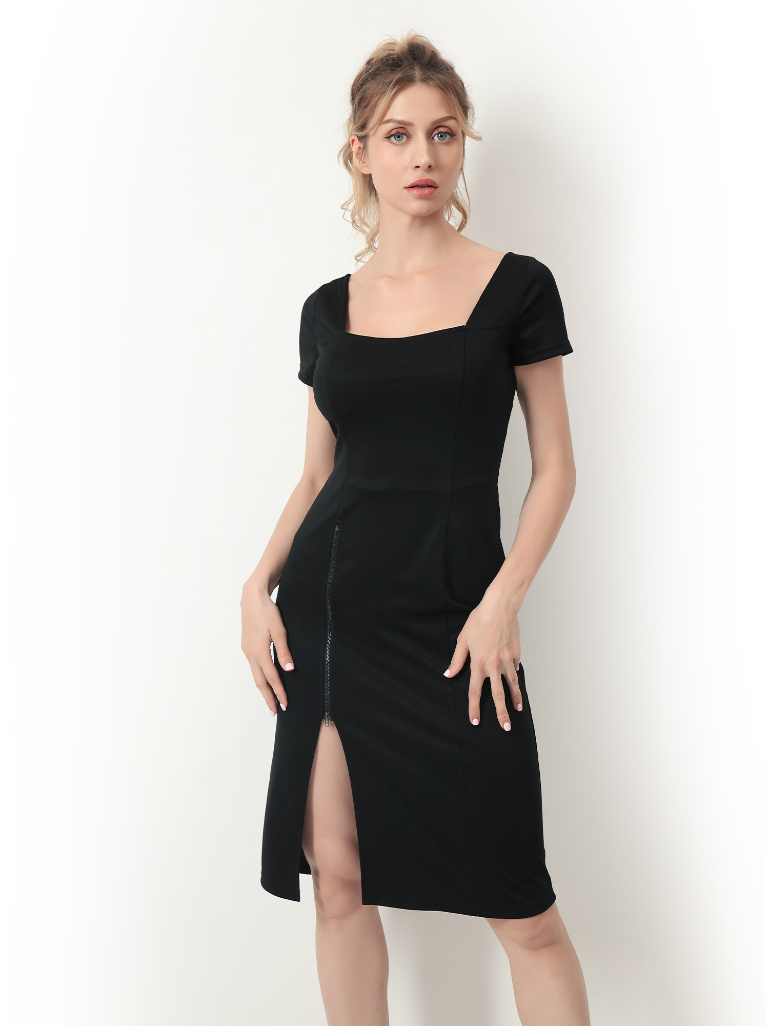 If you want a dress that is eye-catching, shapes you well, and is versatile for any occasion, this is the perfect black dress for you. The squareneck gives a good silhouette for the neckline. The split on the side thigh makes your figure look more flattering. The best part of it, the drawstrings on the back help shape the waist and make you look slim on the waist and sexy on the back. With a built-in bra, there is no need to worry about what kind of bra to wear for the back look. Plus, the built-in bodysuit design will hold the dress the prevent it from moving while wearing it. What are you waiting for? Only limited quantity.